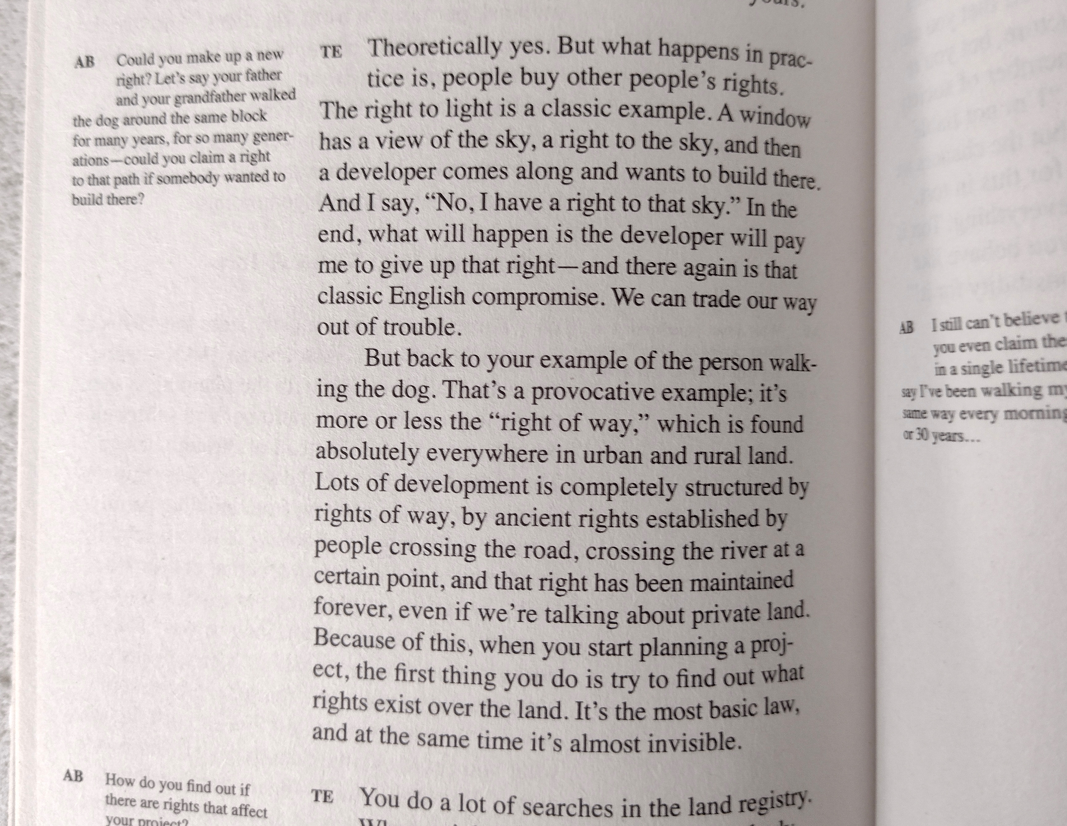The terrain dictates the terms of coexistence with the various others. Wide pavements are for everyone to run, no cables, no pigeons, the artificial swamps bear the sweetest berries.
